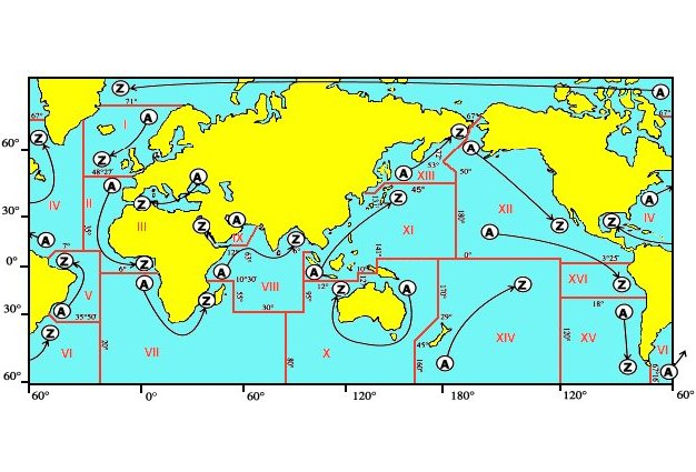 Abb.: Aufteilung der Seegebiete in unterschiedliche Regionen (Wkipedia)