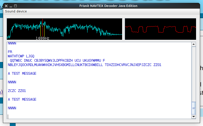Frisnit.com bietet auch eine NAVTEX-Decoder-Software an mit der sich die Audiosignale des unteren Seitenbandes dekodieren lassen. Die Decoder-Software gibt es in zwei Versionen: