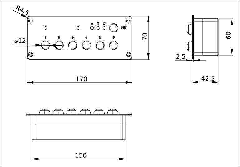 3 LEDs for destination display (A, B, C)