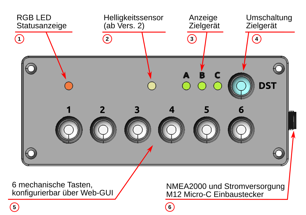 The OBPkeypad 6/1 is designed to be switched on and off using the NMEA2000 bus.